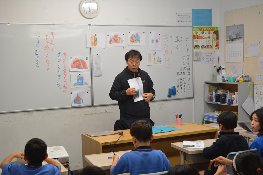 加納校長先生による授業が、Aコース・Bコース・Sコースの小学部1年生から中学部3年生まで行われています。今月は、小学部3年生の道徳と、中学生に向けた「キャリア教育」の授業がありました。またSっ子集会の後の「校長先生と遊ぼう」では、青空の下、みんなで「ぴよぴよちゃん」や「言うこと反対やること一緒」をして、楽しく身体を動かしました。