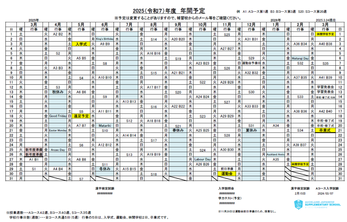 2025(令和7)年度 年間予定(2025年3月24日送付)